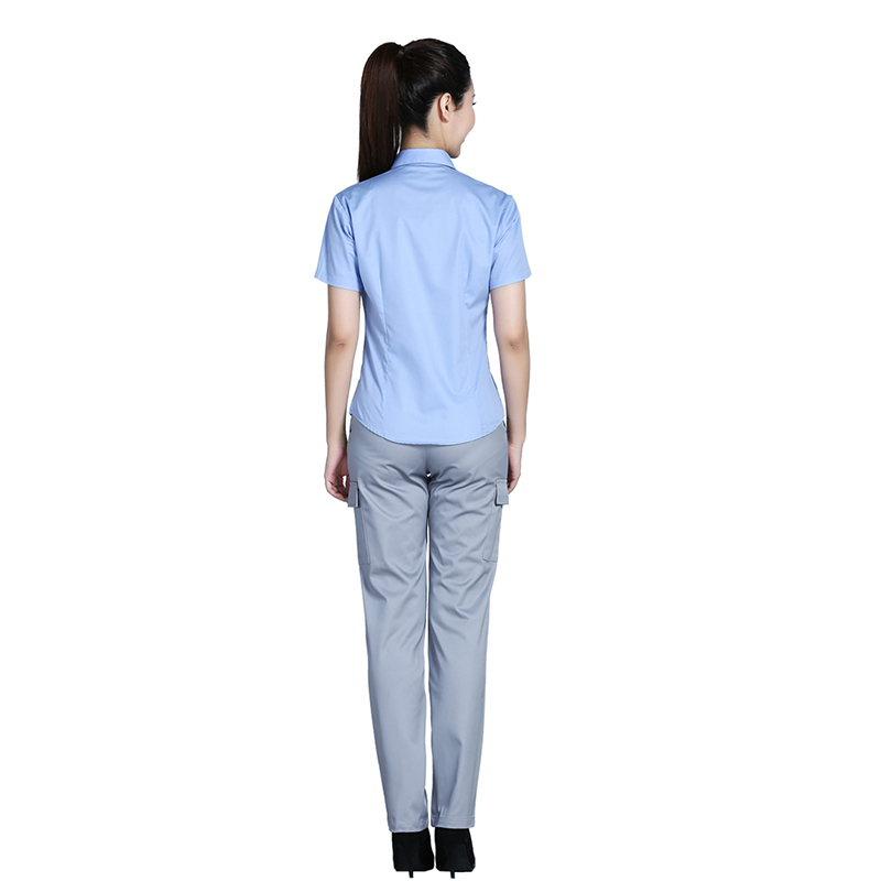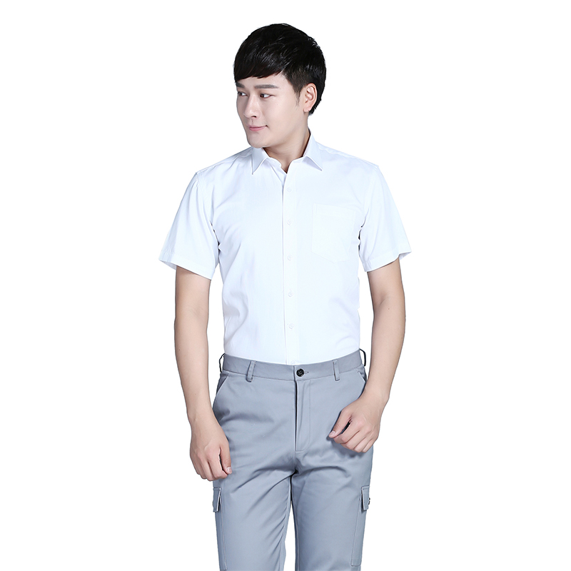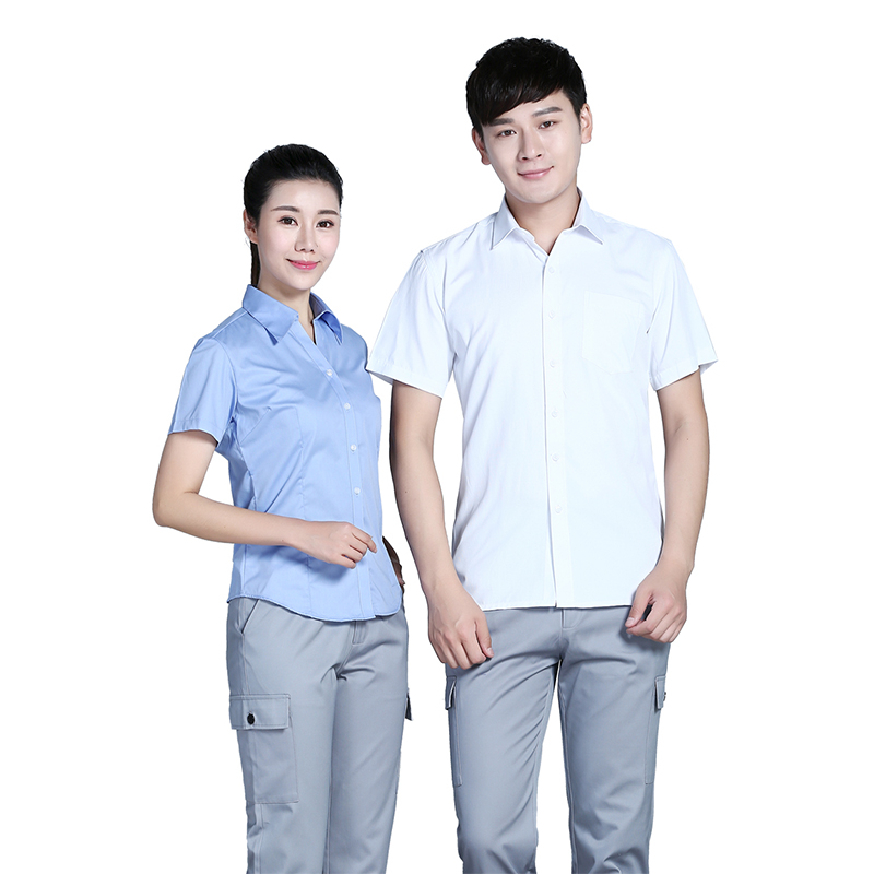 相关全棉蓝色V领短袖衬衫ZL004推荐